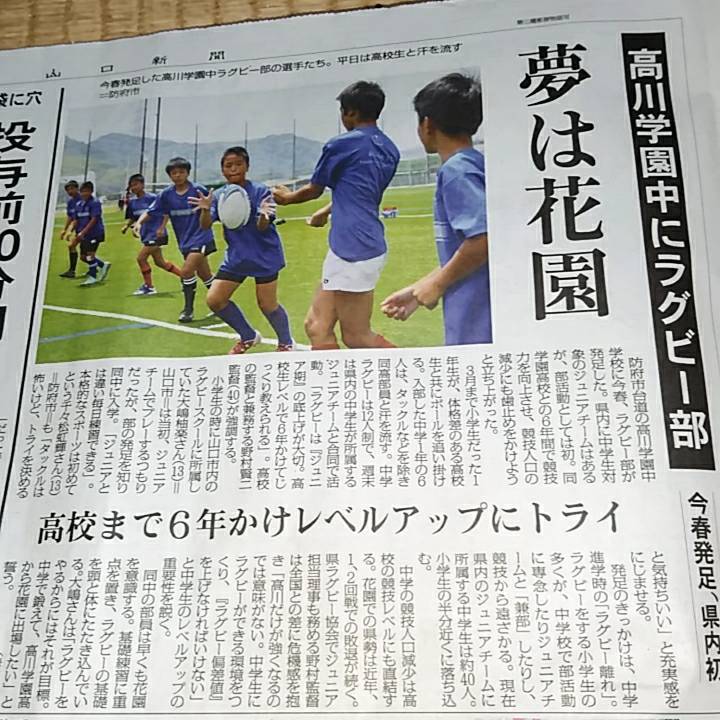 山口新聞が中学ラグビー部の再結成を取り上げてくださいました。