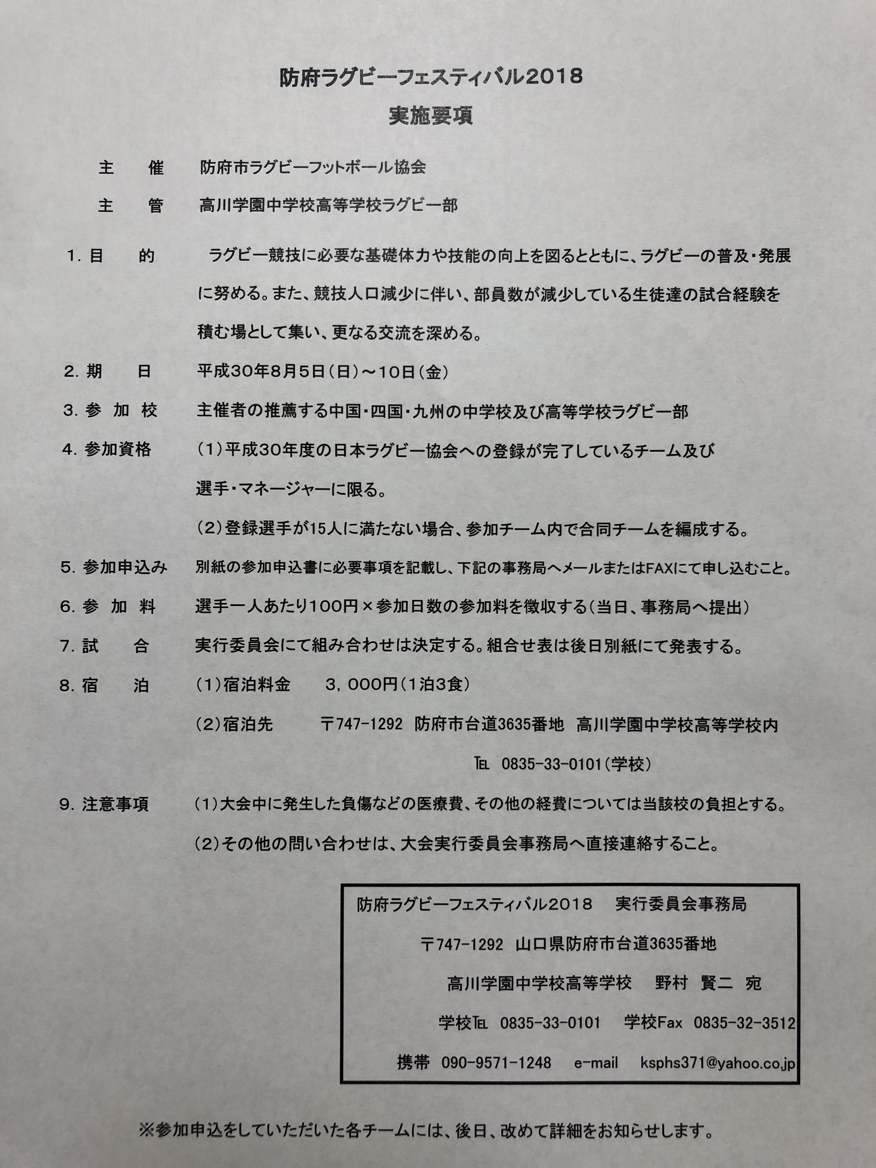 戻る: 防府ラグビーフェスティバル2018のご案内